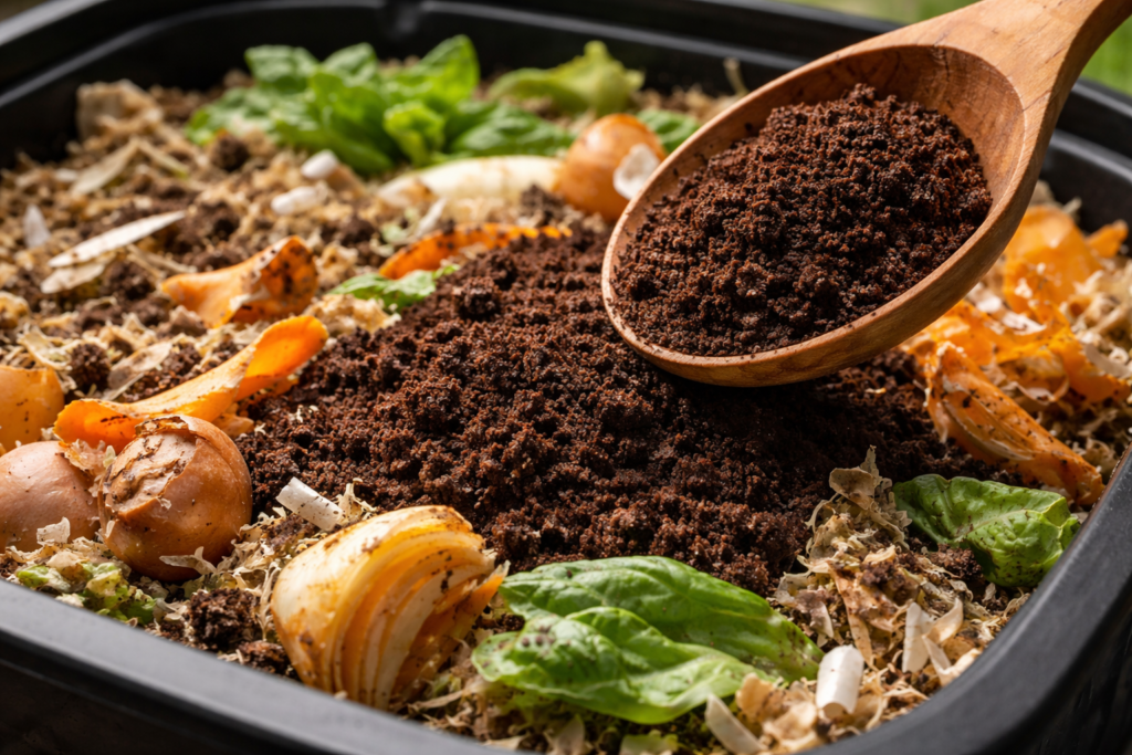 コーヒーかすの発酵方法はうまく設計できれば家庭内の有機物を循環させる小さな仕組みになり得ます。